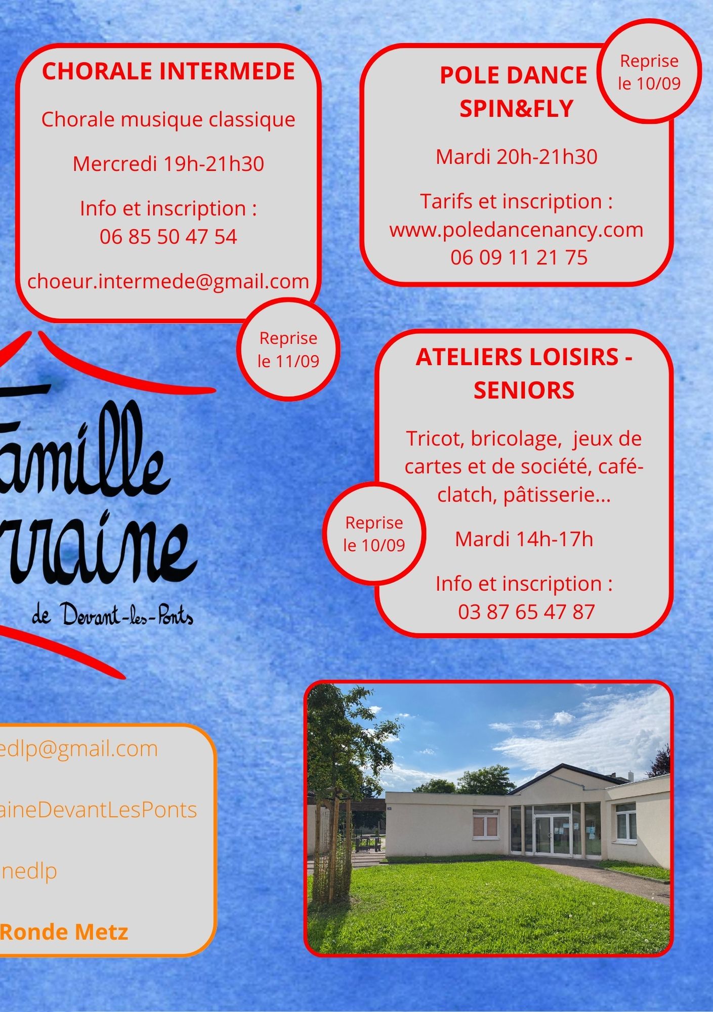 La Famille Lorraine de Metz Devant Les Ponts vous propose des activités pour les enfants, les ados, les adultes et les seniors.